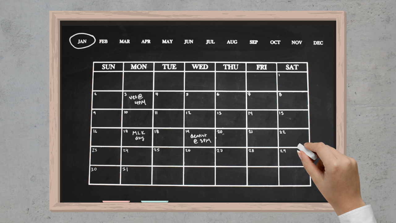 After that, our calendar is ready to be filled. I grabbed a little pencil canister off Amazon that applies with just a sticker to the wall. This is a perfect spot to store all of my chalk pieces, markers, pencils, that kind of thing.