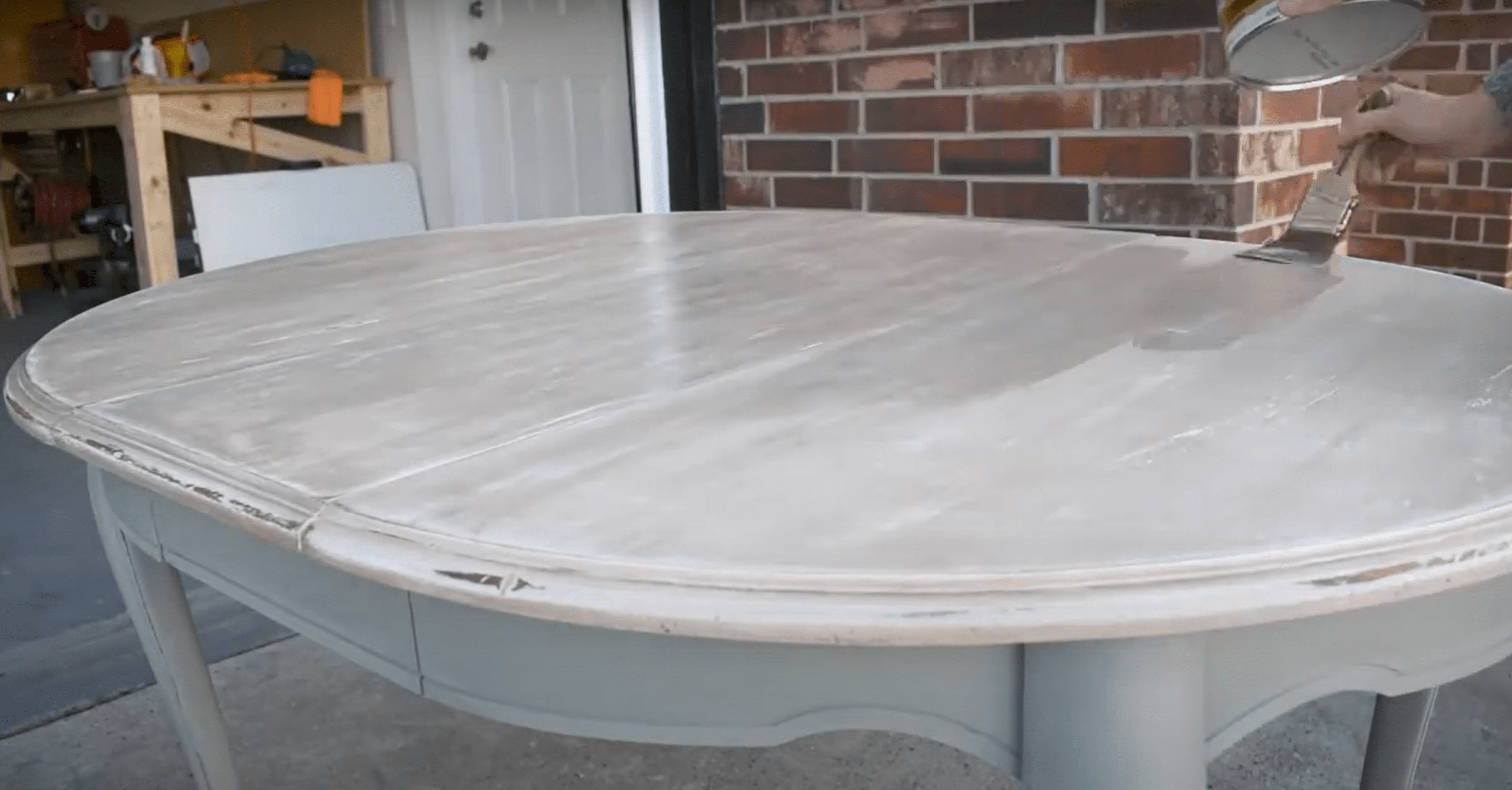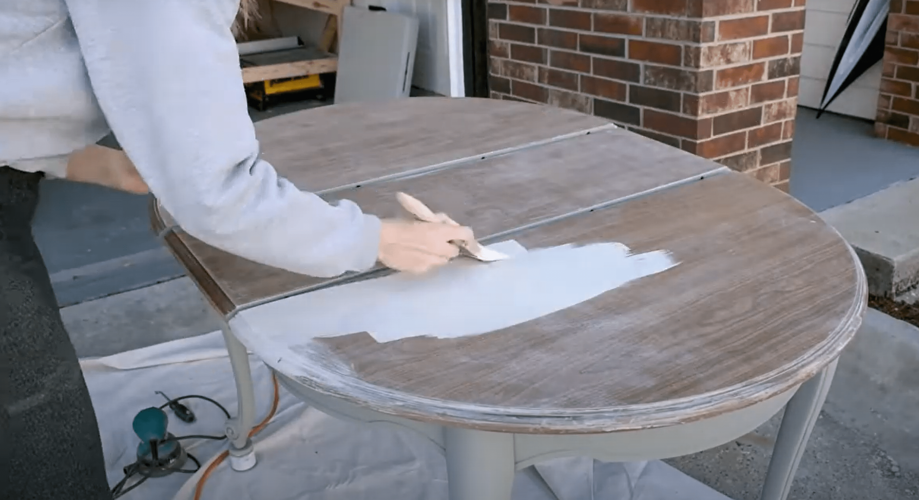 This threw me for a loop for a couple of days, and I may have thrown this table to the back of the garage and ignored it, but I came back eventually with a new plan. I decided to go back to basics, which for me is a two-tone glazed top. So I started with two layers of white chalk paint. It's okay to take a break, and sometimes it's better to just cut your losses and move on, but I knew in this case I was just being tired. And that's another lesson too often we have a better eye for the things that we're doing than our hands can actually keep up with. It can be discouraging when something doesn't look how you know it should in your head. This is a roadblock on the path to getting better that everyone has to face. Don't let it make you turn around.