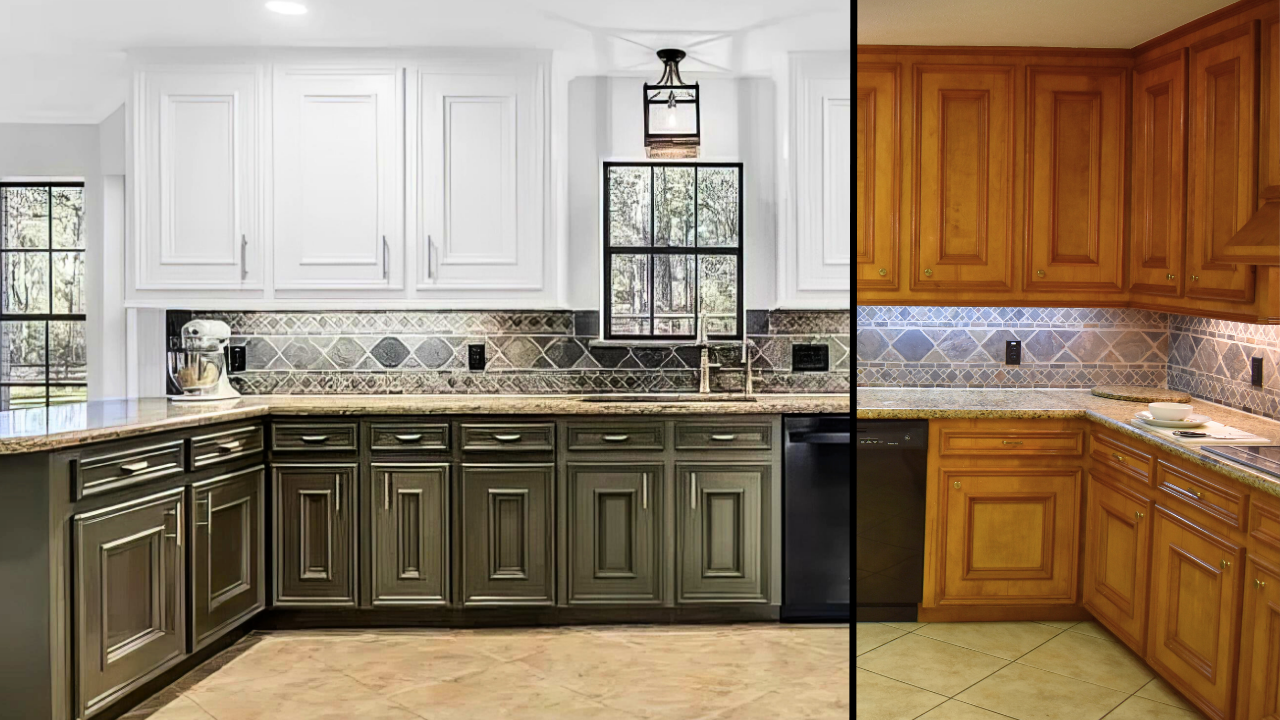 You want something high-end built specifically for cabinets. Regular wall paint, chalk paint, that kind of thing, it's just not going to hold up the same.