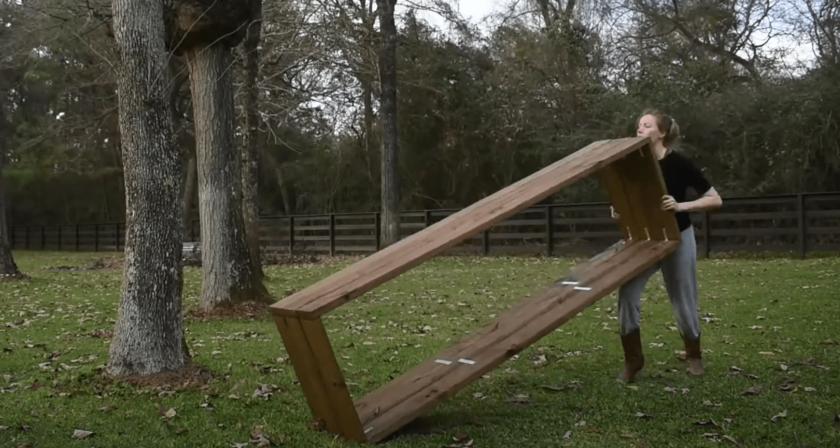 When wood is treated, it's really soaked and bogged down by the chemical so it can get pretty heavy. But I'm strong and I got it done!