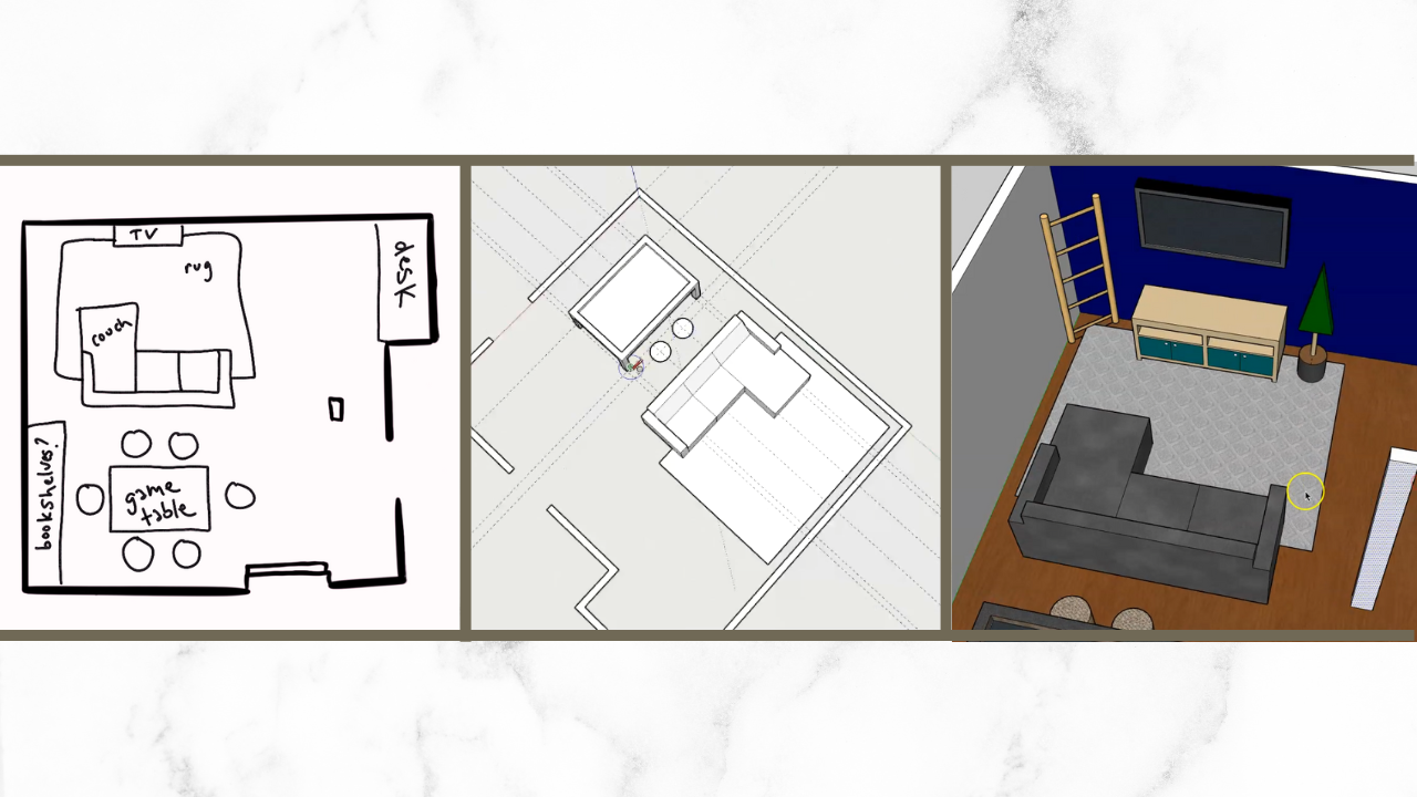 In this video, I'll be walking through a complete before and after of how I designed my brother's basement in SketchUp.